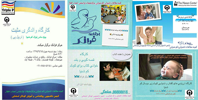هفت کارگاه آموزشی ویژه "مداخلات زودهنگام در کم شنوایی" به همت کمیته مطالعات ناشنوایی/ کم شنوایی مرکز تحقیقات توانبخشی اعصاب اطفال دانشگاه علوم بهزیستی و توانبخشی و با همکاری مرکز فرانک و انجمن دانشجویی کودکان استثنایی، در دانشگاه علوم بهزیستی برگزار شد.
