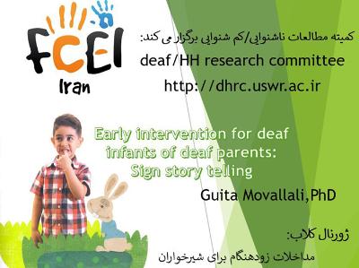 اخبار > نشست علمی " مداخلات زودهنگام برای شیرخواران ناشنوا با والدین ناشنوا: قصه گویی با اشاره های کودکان " برگزار می شود
