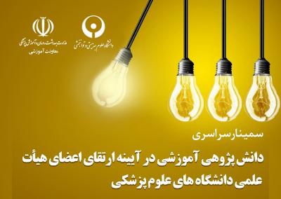 اخبار > سمینار سراسری "دانش پژوهی آموزشی در آیینه ارتقای اعضای هیات علمی " دانشگاه های علوم پزشکی، فردا (سه شنبه) برگزار می شود