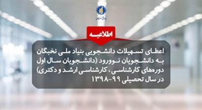 اخبار > فراخوان ثبت نام تسهیلات دانشجویی بنیاد ملی نخبگان در سال تحصیلی 99-98