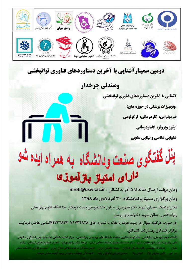 زمان ارسال مقالات و دریافت غرفه سمینار " آشنایی با آخرین دستاوردهای فناوری توانبخشی و صندلی چرخدار"، تمدید شد