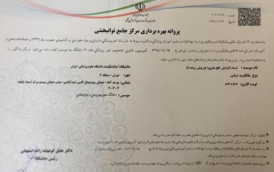 اخبار > پروانه بهره برداری مرکز جامع توانبخشی « اسما » دریافت شد