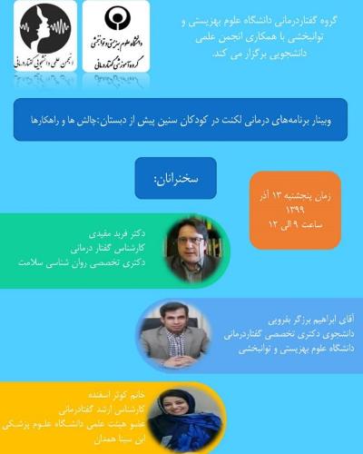 اخبار > وبینار « برنامههای درمانی لکنت در کودکان سنین پیش از دبستان: چالشها و راهکارها »، روز پنجشنبه برگزار می شود