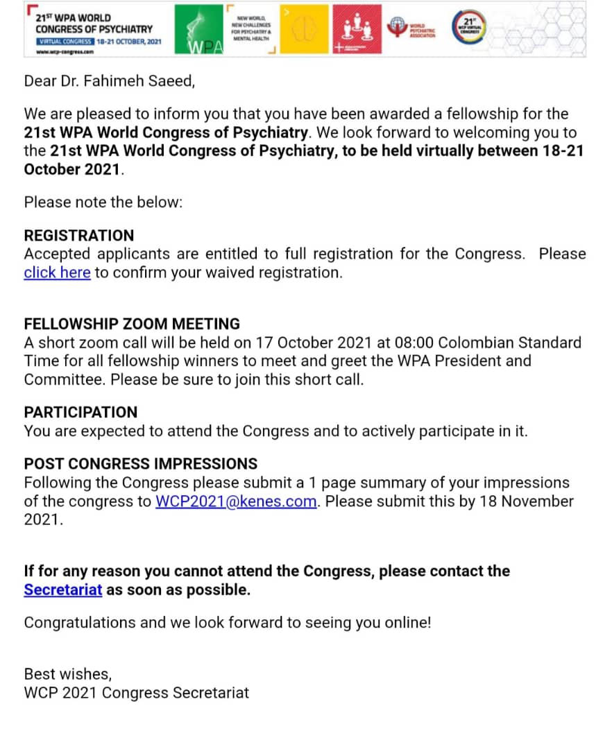 اخبار > جایزه کنگره جهانی روانپزشکی، به عضو هیات علمی دانشگاه علوم توانبخشی و سلامت اجتماعی تعلق گرفت