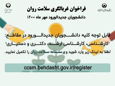 اخبار > همه دانشجویان ورودی امسال تا تاریخ 10 آذرماه، پرسشنامه طرح " غربالگری سلامت روان " را تکمیل کنند