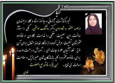 اخبار > پیام تسلیت معاون تحقیقات دانشگاه، به مناسبت درگذشت همکار ارجمند شادروان دکتر "روشنک وامقی"