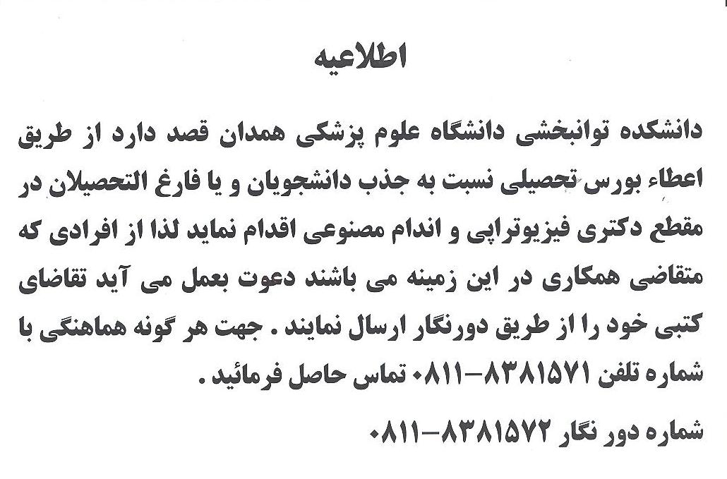 اخبار > اعطاء بورس تحصیلی به دانشجویان برای مقطع دکتری فیزیوتراپی و اندام مصنوعی