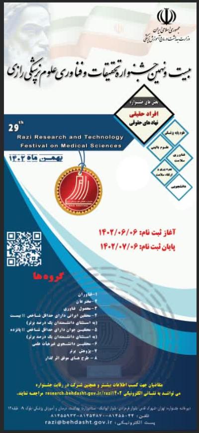 اخبار > بيست و نهمين جشنواره تحقيقات و فناوری علوم پزشكي رازی