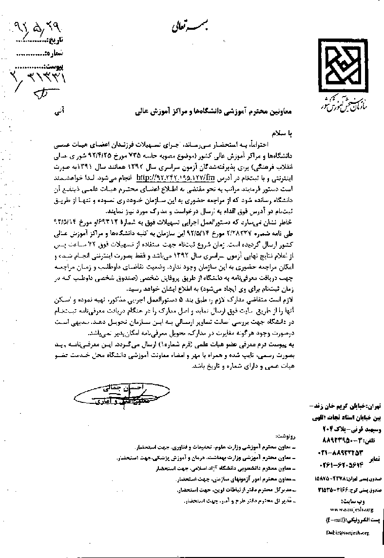 - اطلاعیه ثبت نام حضوری پذیرفته شدگان آزمون دكتري تخصصي سال ۱۴۰۲