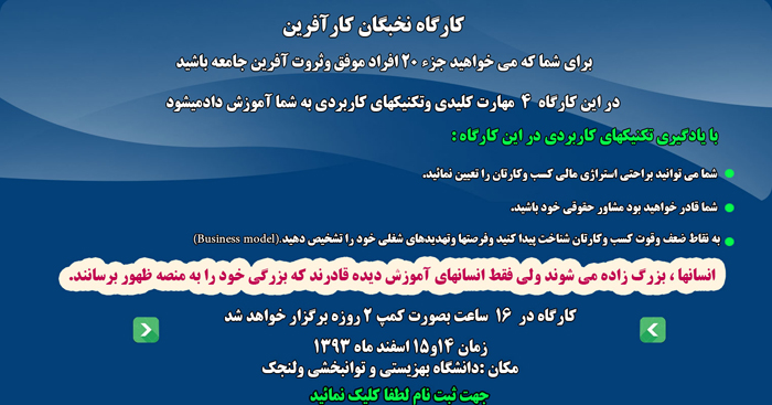 کارگاه آموزشی نخبگان کارآفرین